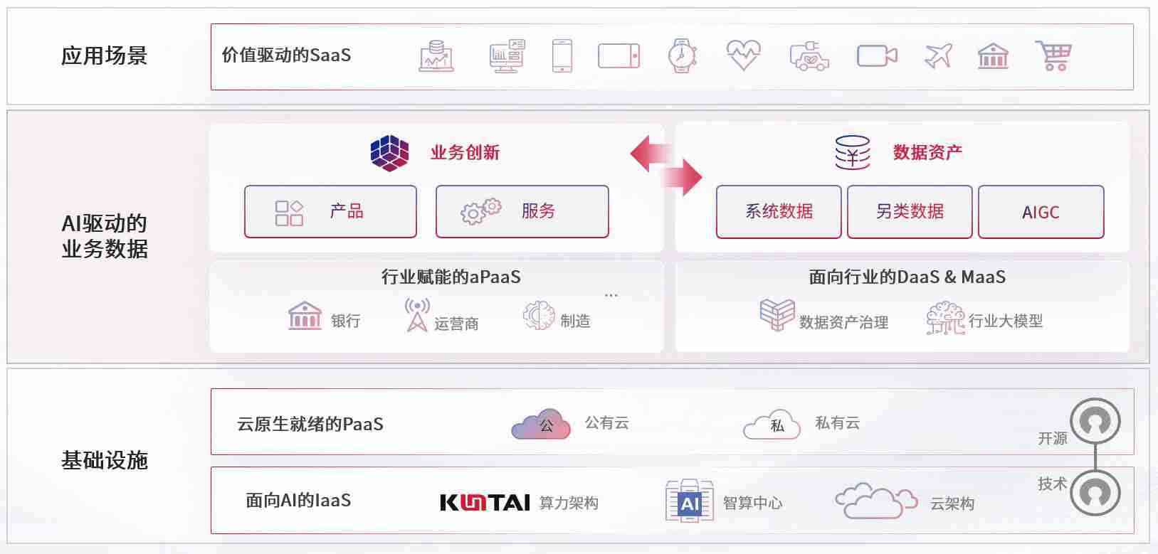 数字时代,,,,围绕企业数字化转型的关键要素,,,PAYPAY数码开创性的提出数云融合战略和技术体系框架,,,,着力在云原生、、、、数字原生、、、AI原生和信创产业上架构产品和服务能力,,,,为处在不同数字化转型阶段的快消零售、、、汽车、、、、金融、、医疗、、、、政企、、教育、、运营商等行业客户提供泛在的敏捷IT能力和融合的数据驱动能力,,,构建跨界融合创新的数字业务场景和新业务模式,,,,助力企业级客户建立面向未来的核心能力和竞争优势,,全面推动社会的数字化、、智能化转型升级。。。。